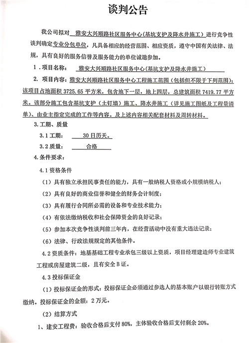 大興順路社區(qū)服務中心基坑支護及降水工程——競爭性談判