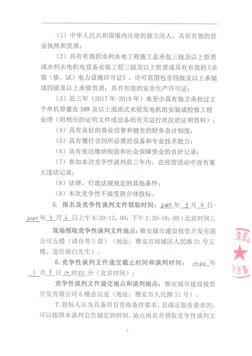 城利水電公司羅家灣電站1#水輪發(fā)電機(jī)組A級(jí)檢修工程競爭性談判公告