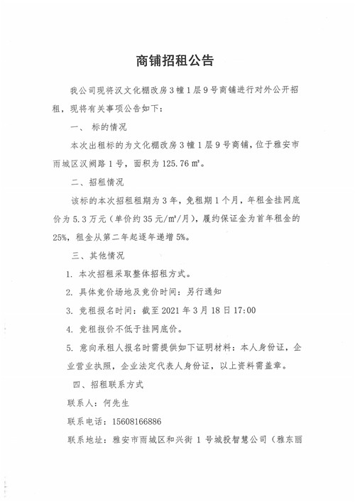 商鋪招租公告
