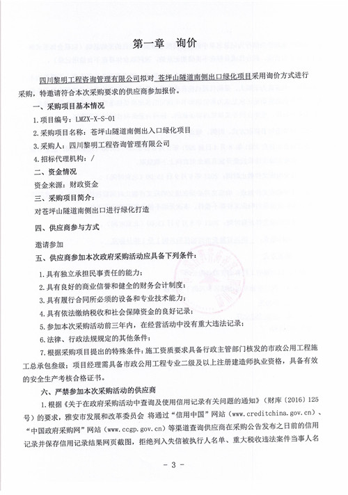 黎明咨詢公司蒼坪山隧道南側出口綠化項目詢價函