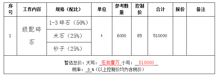 2.1項目內(nèi)容:雅安文教新城市政道路恢復(fù)重建項目(一標(biāo)段)級配碎石采購供貨商的確定,保障市政公司相關(guān)工程的順利進(jìn)行,具體貨物見材料清單(本招標(biāo)文件所附清單(數(shù)量、規(guī)格、種類)僅供參考,最終采購數(shù)量實際發(fā)生(分散采購)的為準(zhǔn))。