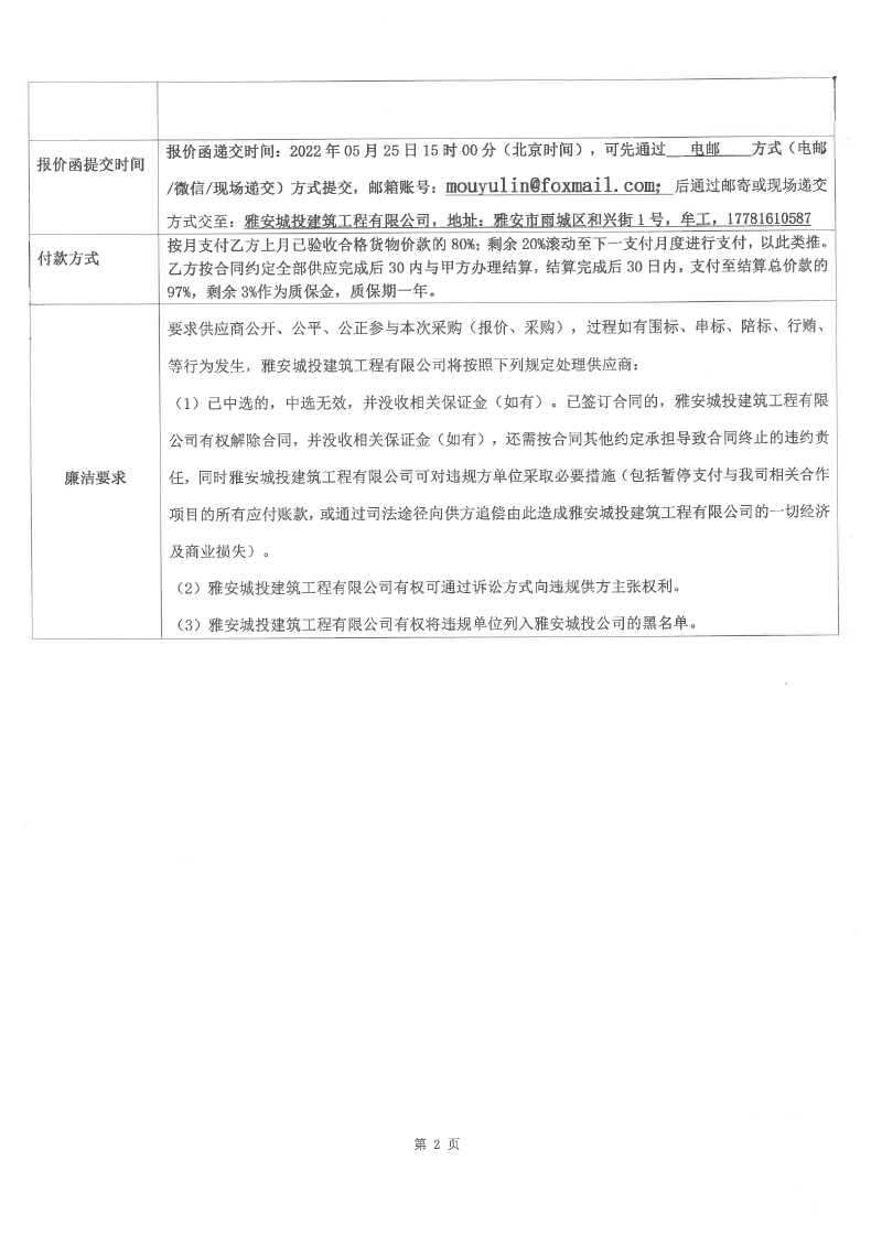 雅安市建安公司棚戶區(qū)改造安置房項目配管、鋼管等水電材料競價函