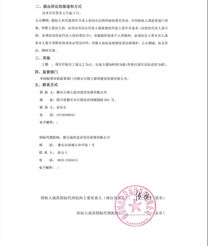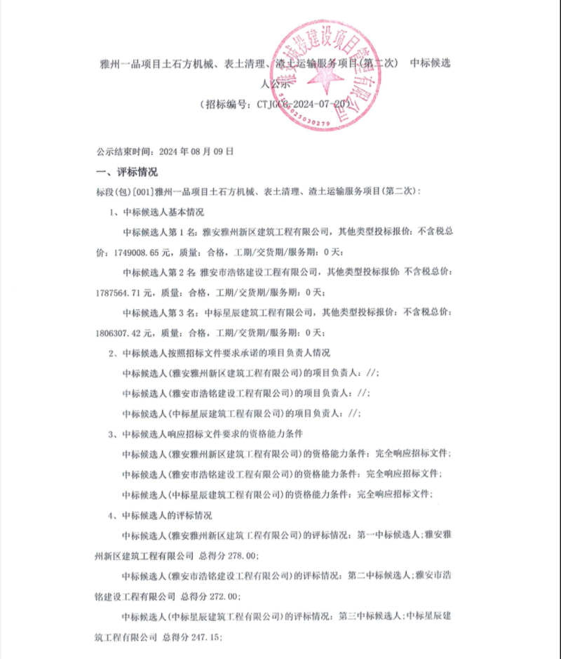 雅州一品項目土石方機械、表土清理、清土運輸服務項目(第二次)中標候選人公示