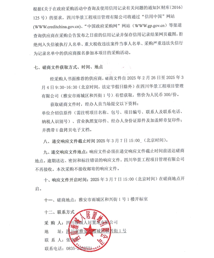 雅州印項(xiàng)目前期物業(yè)服務(wù)公司采購(gòu)項(xiàng)目磋商邀請(qǐng)