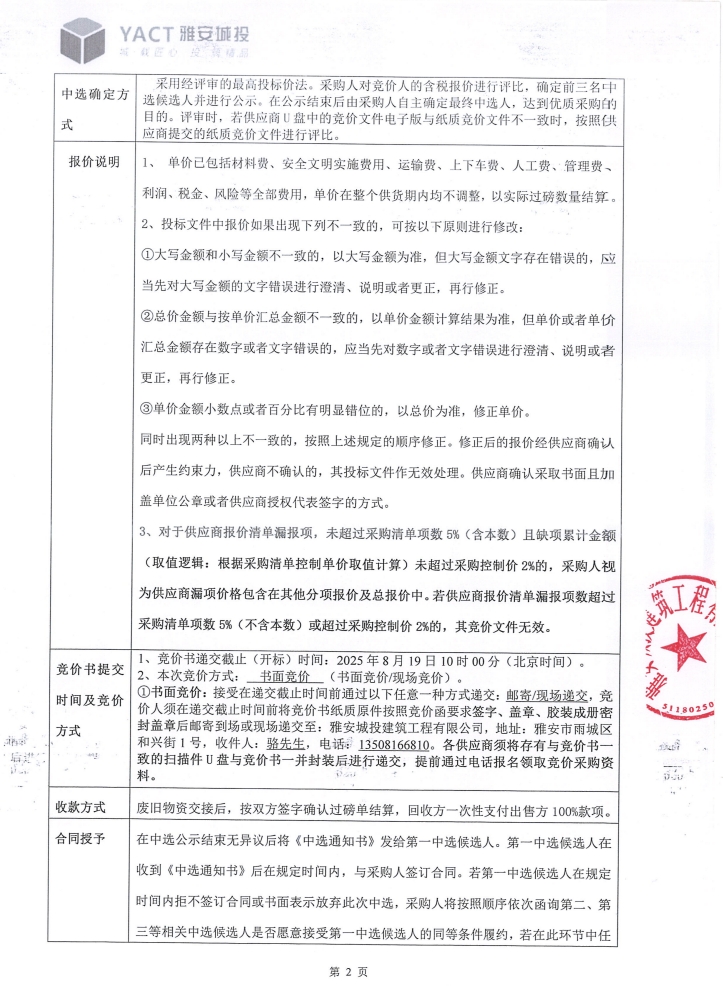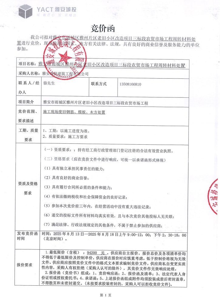 雅安市雨城區(qū)雅州片區(qū)老舊小區(qū)改造項(xiàng)目三標(biāo)段農(nóng)貿(mào)市場工程周轉(zhuǎn)材料處置競價(jià)公告